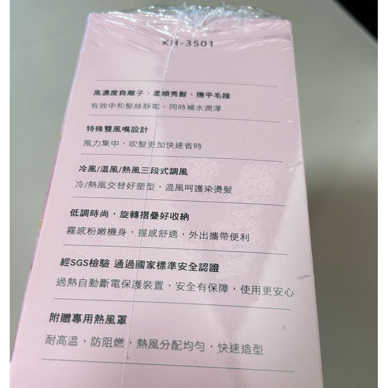 (全新)KINYO 折疊式負離子美型吹風機 (附風罩KH-3501)