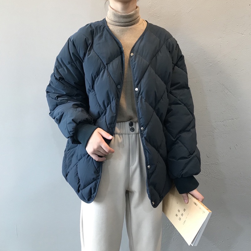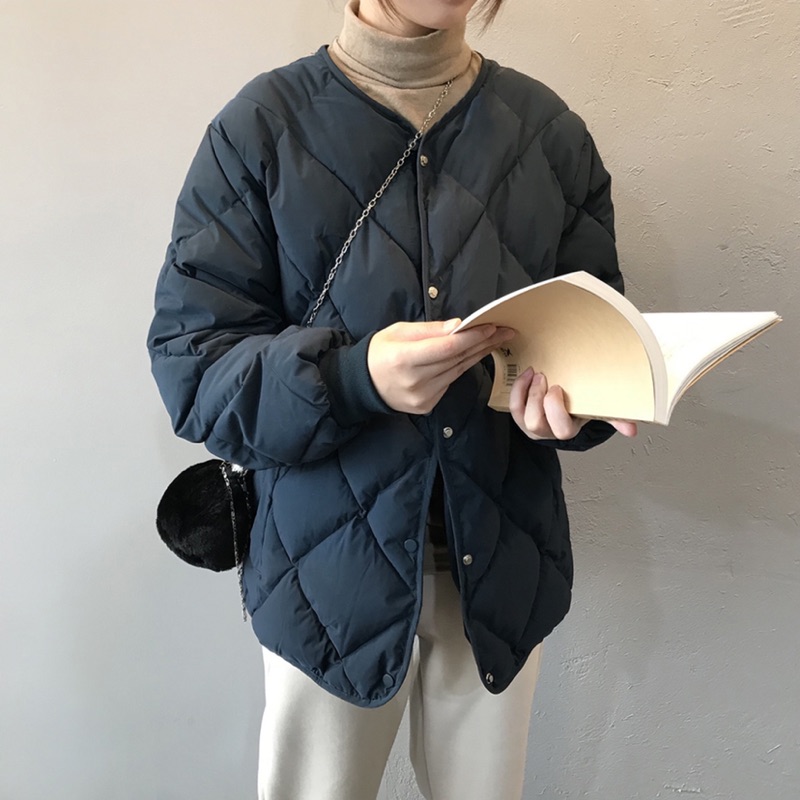 (摩卡M現)▪️韓國復古菱形格紋寬鬆羽絨外套、棉服外套、麵包服外套