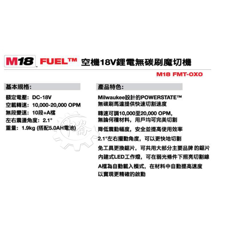 *中崙五金【附發票】 美沃奇 18V鋰電無碳刷魔切機 磨切機 M18 FMT-0X0 M18 FMT-0 M18 FMT