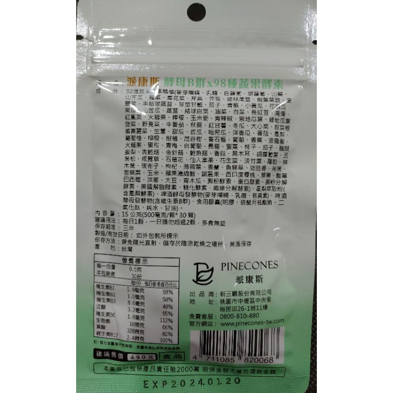 *June's特賣會*派康斯【酵B群】30顆裝.98種蔬果酵素.效期:2024/1/20