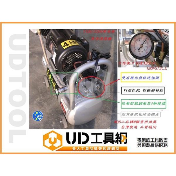 @UD工具網@4HP/30公升雙電壓 雙汽缸高壓型/低壓型空壓機 噴漆防水工程 氣動鎚 多人木工適用 台灣製造