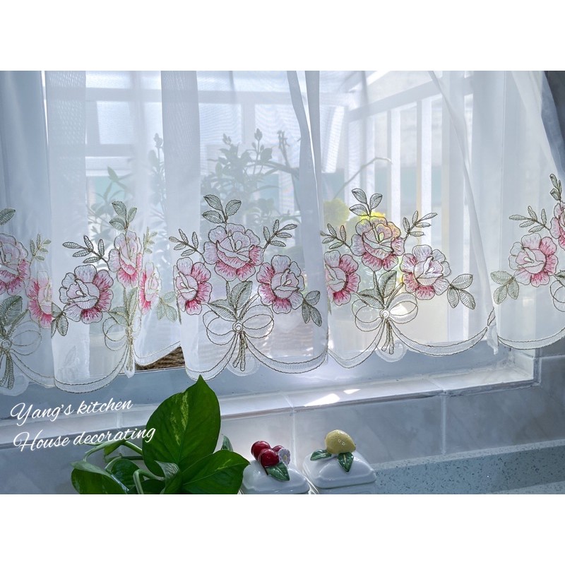 {現貨附發票} 窗簾 玫瑰刺繡窗簾 高質感浪漫窗簾 波浪邊 生活用品 居家生裝飾 裝飾 門簾 紗 鄉村風 法式 家飾
