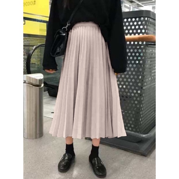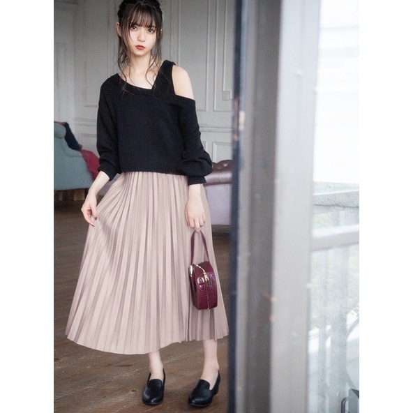 |SHIZUKU日本代購|日本GRL 百搭 長賣款 百摺 優雅微光澤感 百褶裙 長裙 百折