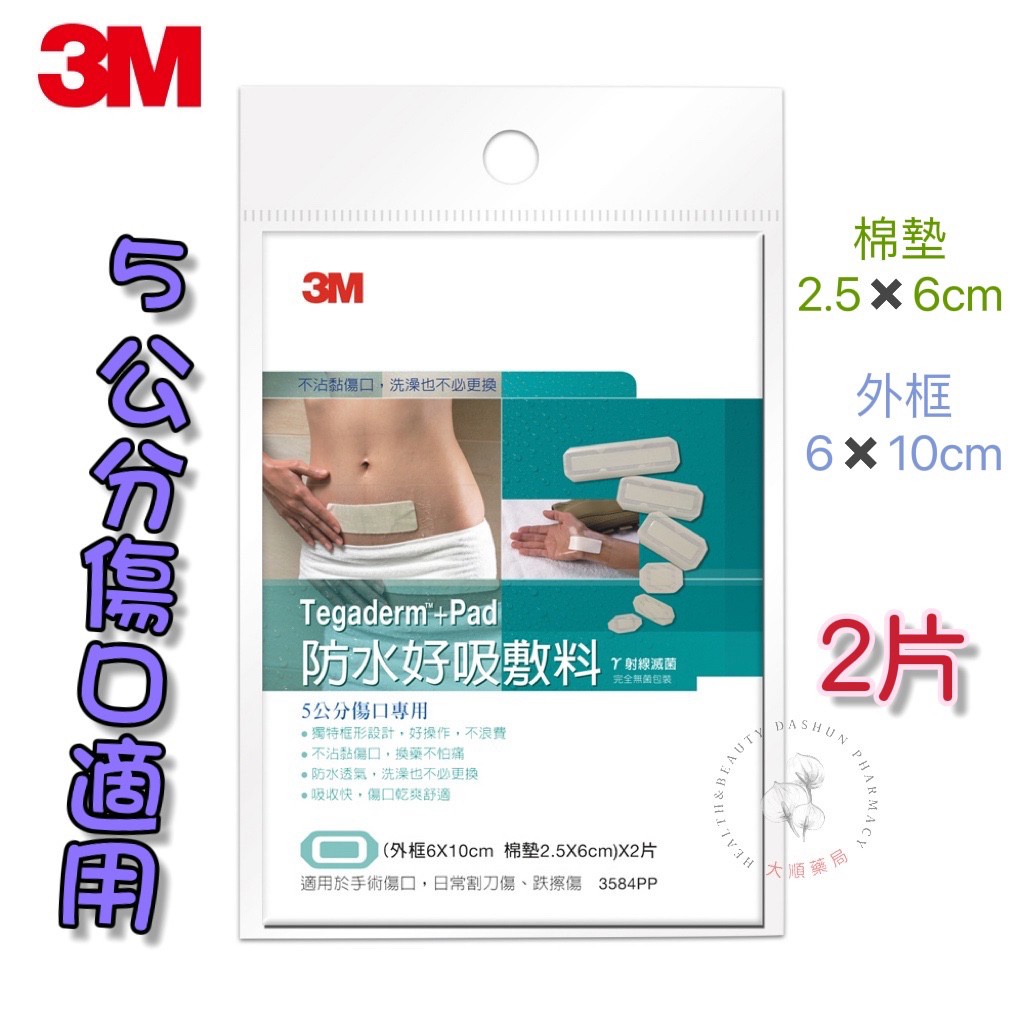 🌈大順藥局🌈3M 防水好吸敷料 3584PP 3582PP (5公分傷口專用 2片) (3公分專用 3片)