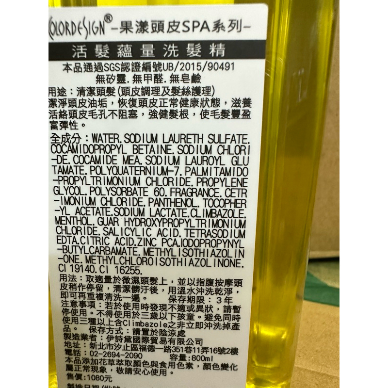 🌕果漾植萃能量 頭皮spa系列 活髮蘊量 控油 抗屑 /無矽靈/無甲醛/無皂鹼800ml/2000ml