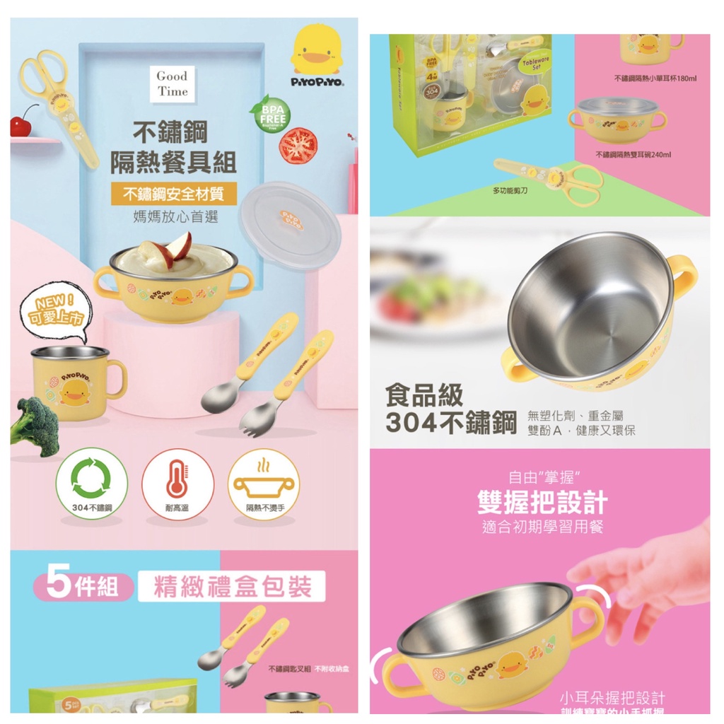 🌞桃園小太陽🌞 黃色小鴨PIYOPIYO 不鏽鋼隔熱餐具組(5件組)