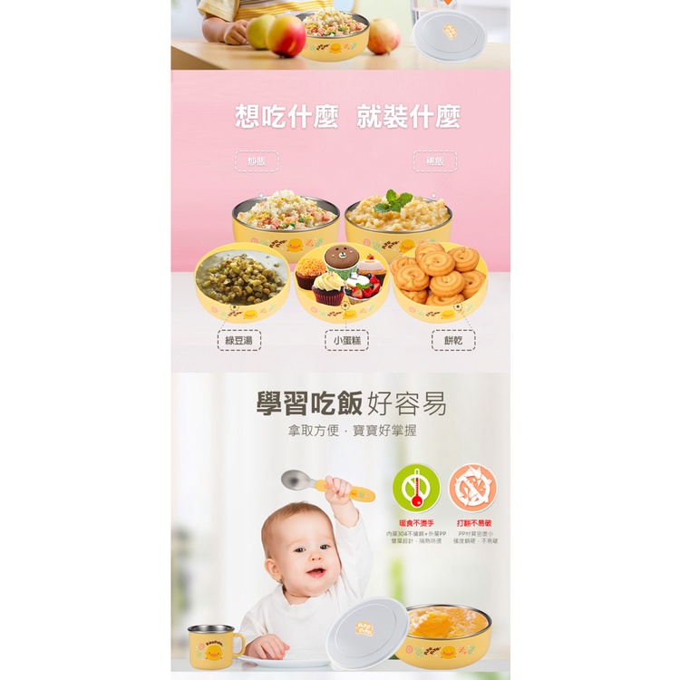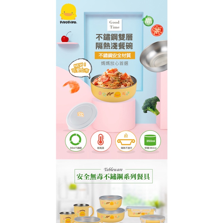 🌞桃園小太陽🌞 黃色小鴨PIYOPIYO 不鏽鋼雙層隔熱淺餐碗350ml/12oz
