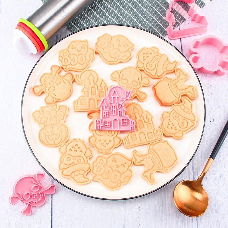 🌹甜食愛上我😋🌹 【現貨】 C萬聖節 巫婆 蝙蝠 南瓜 鬼屋 骷髏頭 幽靈 攪拌鍋 3D 立體 餅乾模 餅乾模具 WD