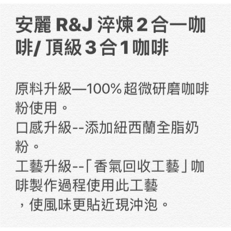 🍀*快速出貨效期最新* 安麗 R&J 淬煉2合1/ 頂級3合1咖啡