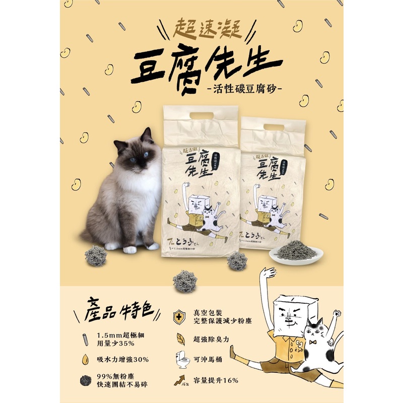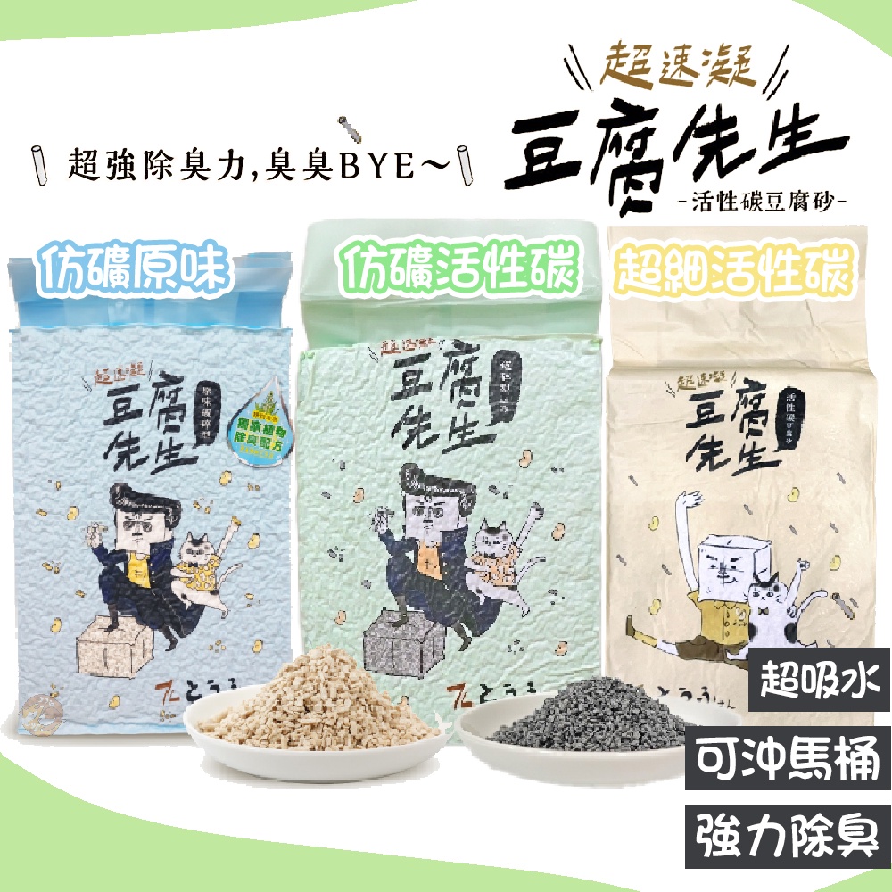 🎁萌寵派對🎁超凝結 豆腐先生 7L 活性碳豆腐砂/破碎型豆腐砂 貓砂 豆腐砂 可沖馬桶 強力消臭 無粉塵