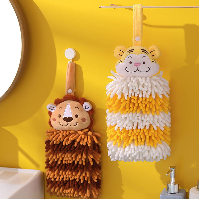 臺灣出🚑貨🎈居家好物🥰可愛獅雙面雪尼爾擦手巾廚房掛式毛巾兒童衛生間吸水速干可愛手帕