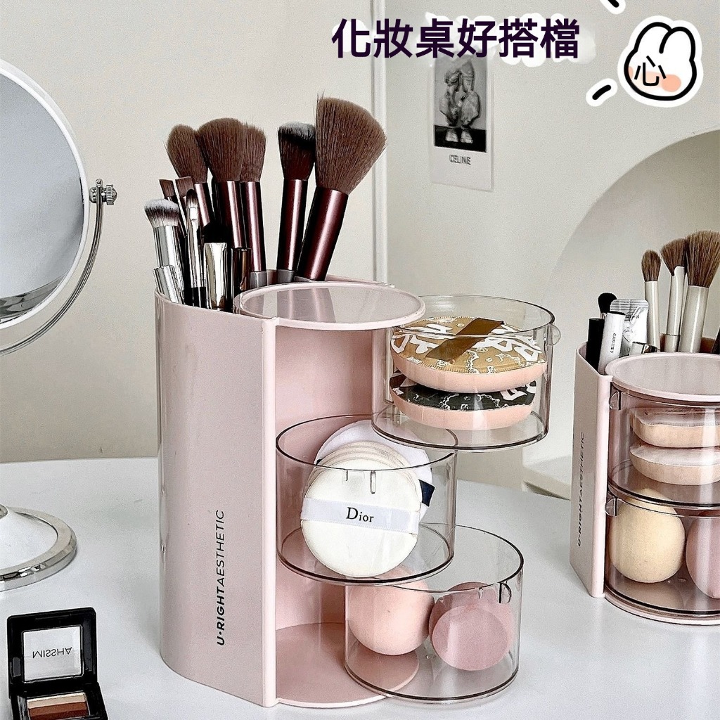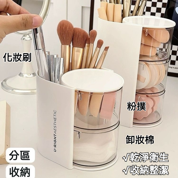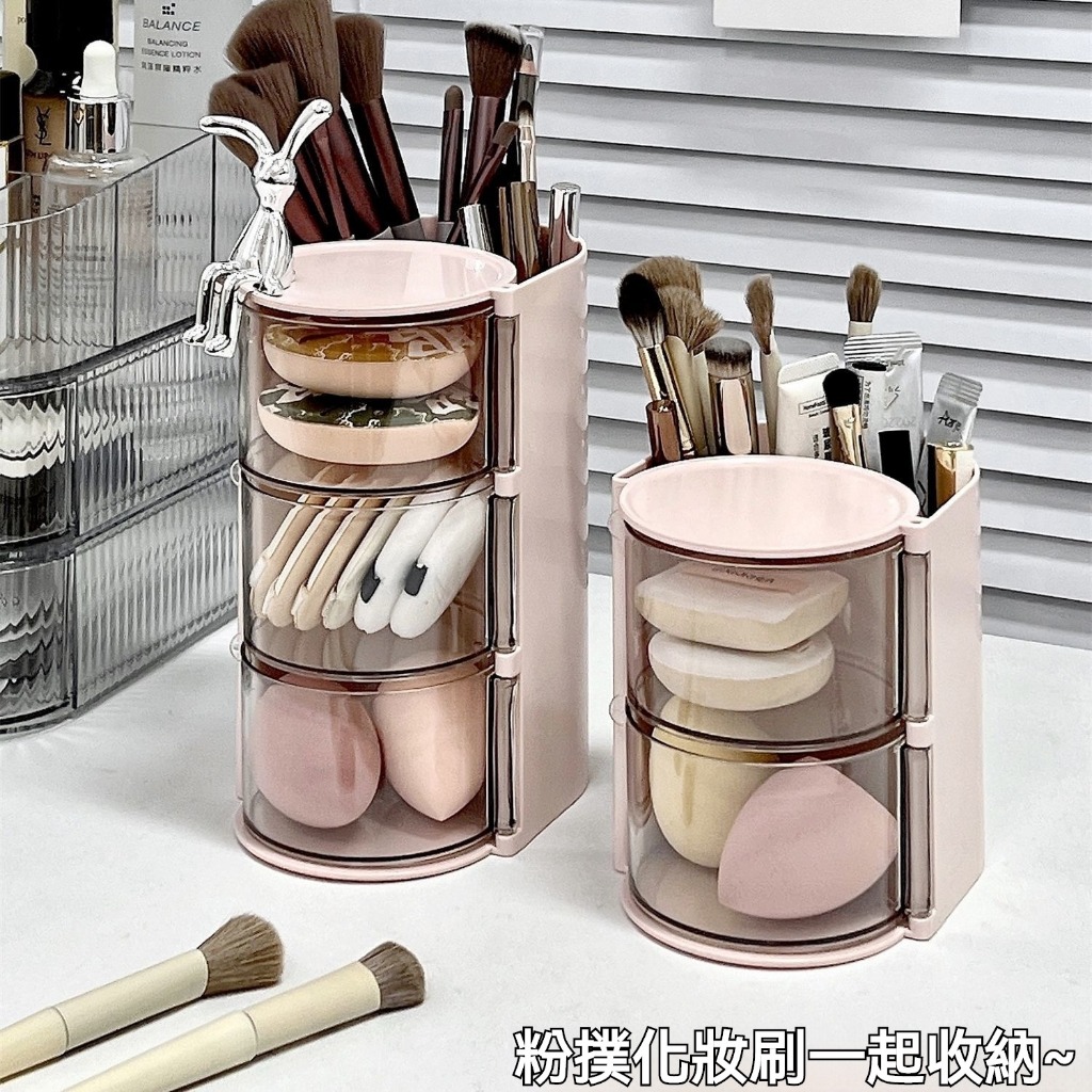 🐷粉撲收納盒🐷旋轉收納盒 桌面收納盒 化妝刷收納盒 美妝蛋收納 刷具收納 筆筒收納盒 化妝品收納盒 飾品收納盒 收納桶