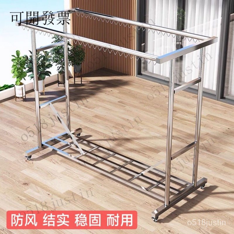 👍304不鏽鋼晾衣架 含稅免運 不鏽鋼落地衣架 服裝店衣架 可移動 室外曬衣架多功能加厚不銹鋼晾衣架均勻承重落地雙桿晾