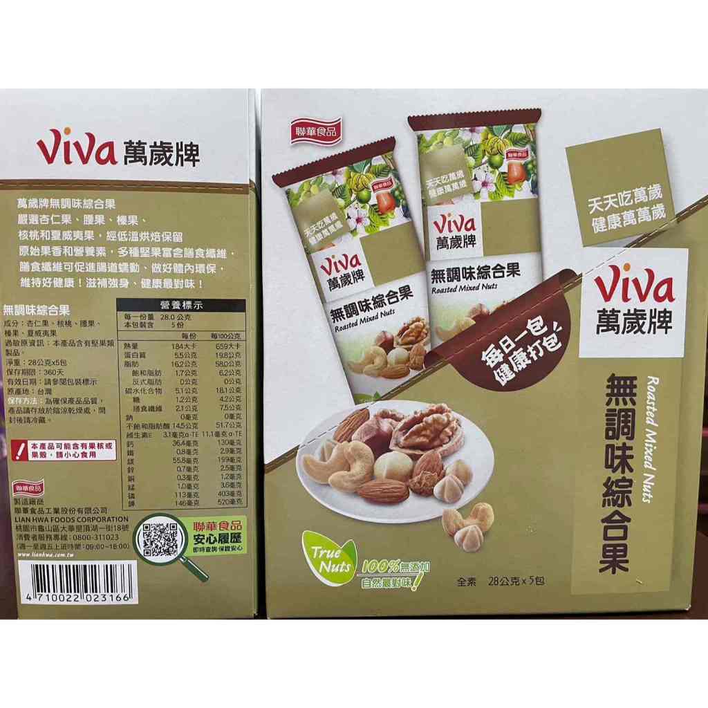 💗【viva萬歲牌】吉祥迎春堅果~無調味綜合果(28gx5包)+蜜脆雙果(30gx5包) 隨手包💗