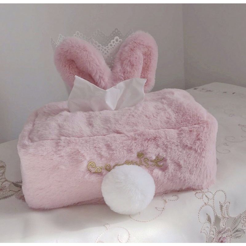💗台灣快速出貨💗 可愛毛絨兔耳朵面紙盒(櫻花粉/經典白)