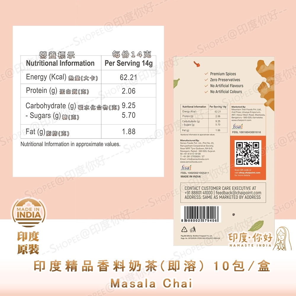 💛【印度.你好】印度奶茶▴經典原味▴印度香料奶茶 Masala 正宗美味 減糖無糖 優質印度香料 無防腐劑色素 印度原裝
