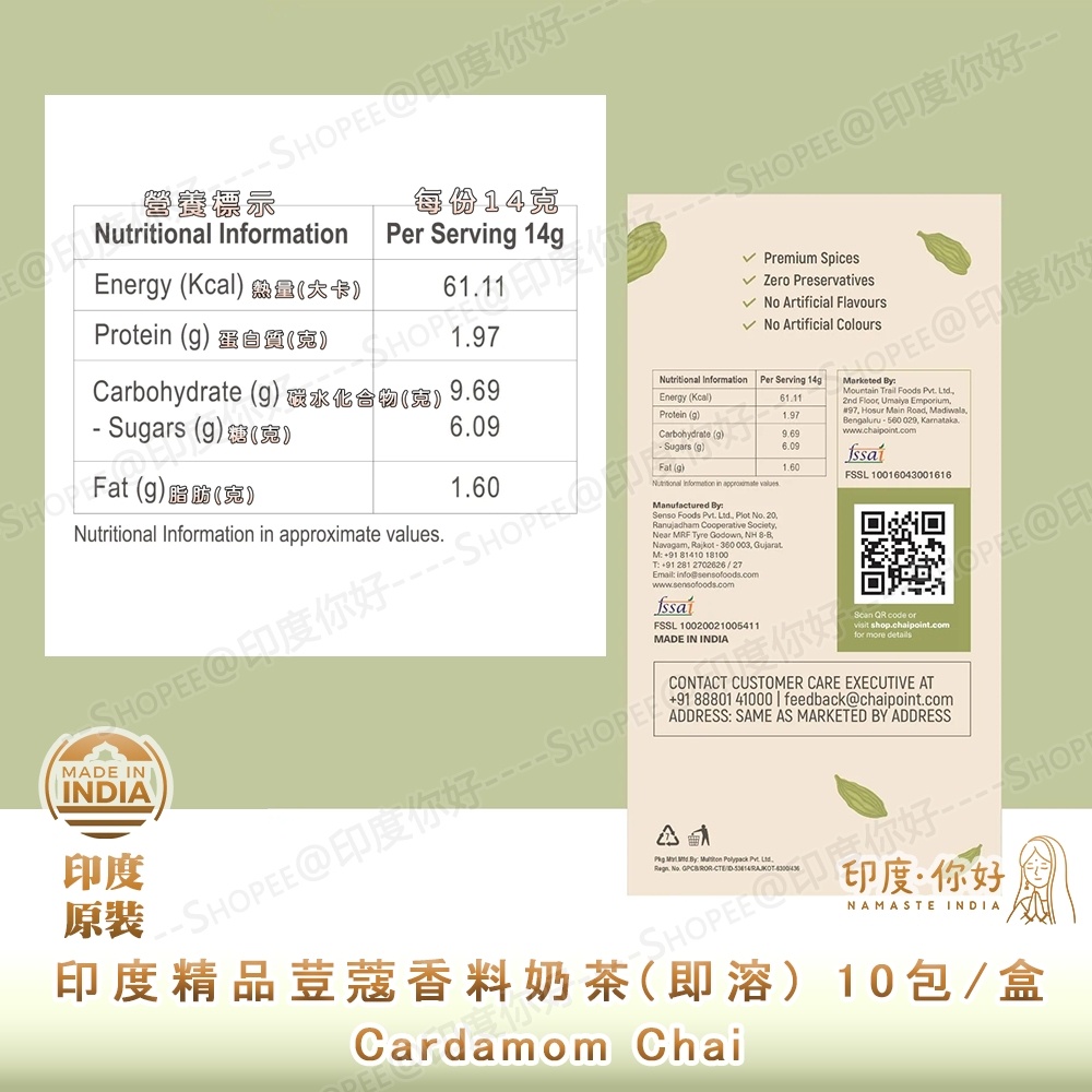 💛【印度.你好】印度奶茶▴荳蔻▴印度香料奶茶 Masala 減糖/無糖 正宗美味 優質印度香料 無防腐劑色素 印度原裝