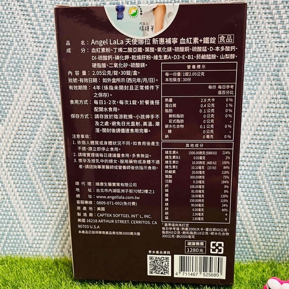 💛【Angel LaLa 天使娜拉】新惠補寧 紅血紅素+鐵錠(30錠/盒)💛最新效期