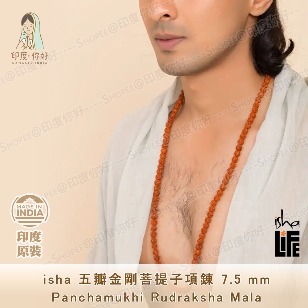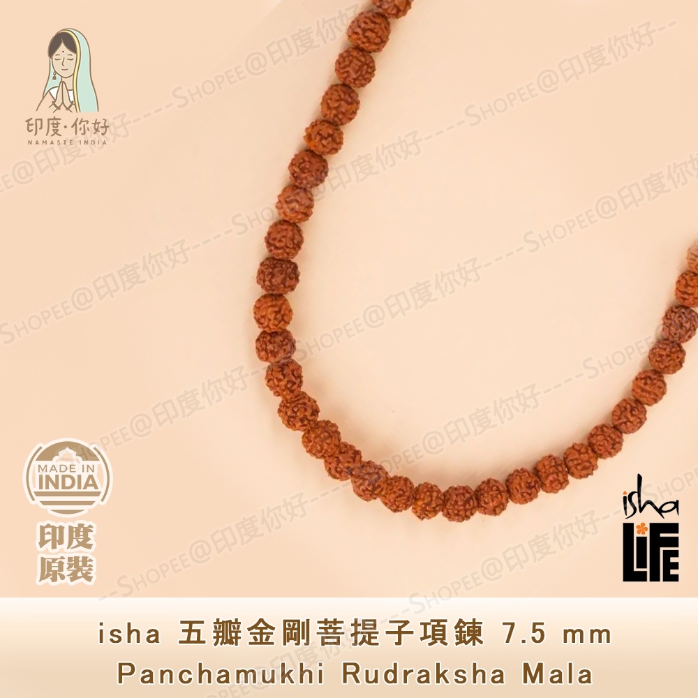 💛isha五瓣金剛菩提子項鍊 (珠子7.5 mm) 創造自身能量繭-Panchamukhi Rudraksha Mala