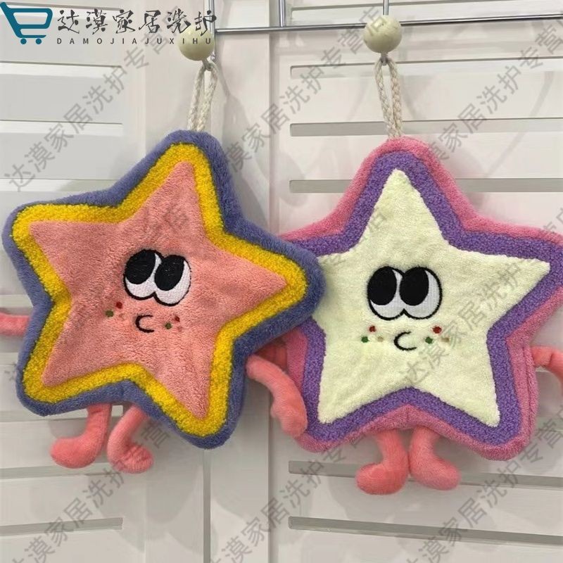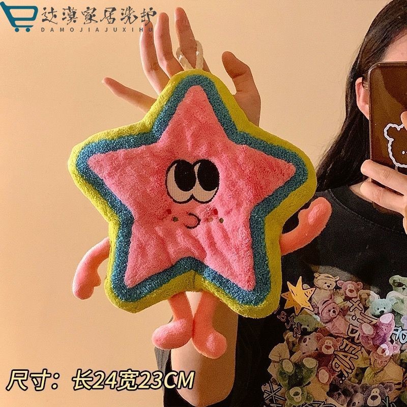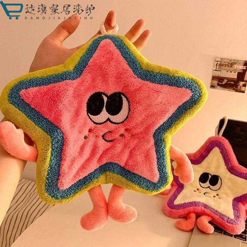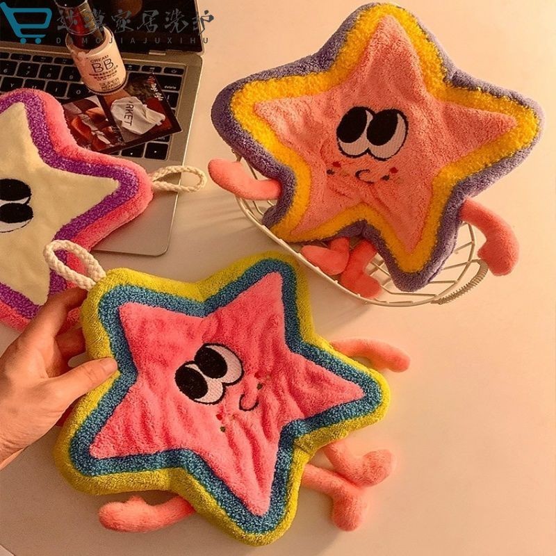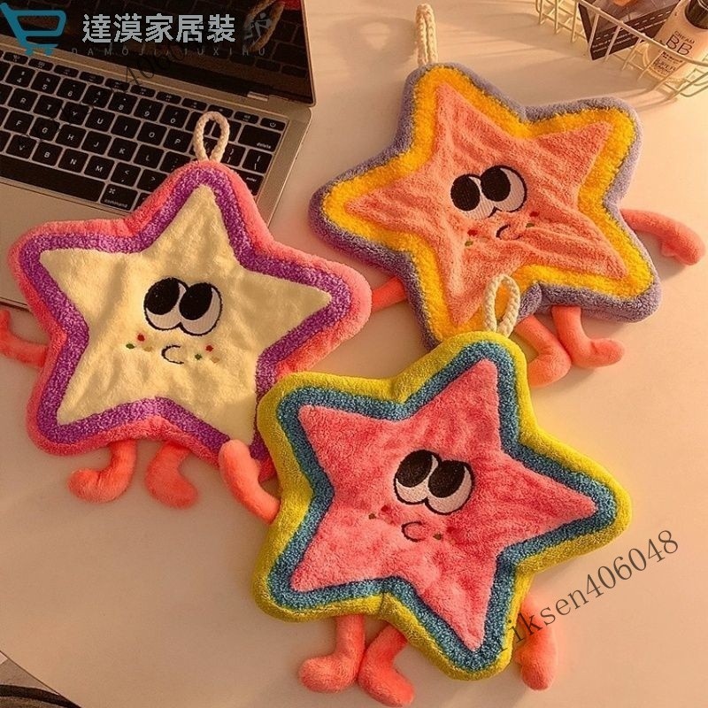 💥免運💥多巴胺星星擦手巾傢用可掛式兒童卡通手帕衛生間廚房吸水速幹手巾