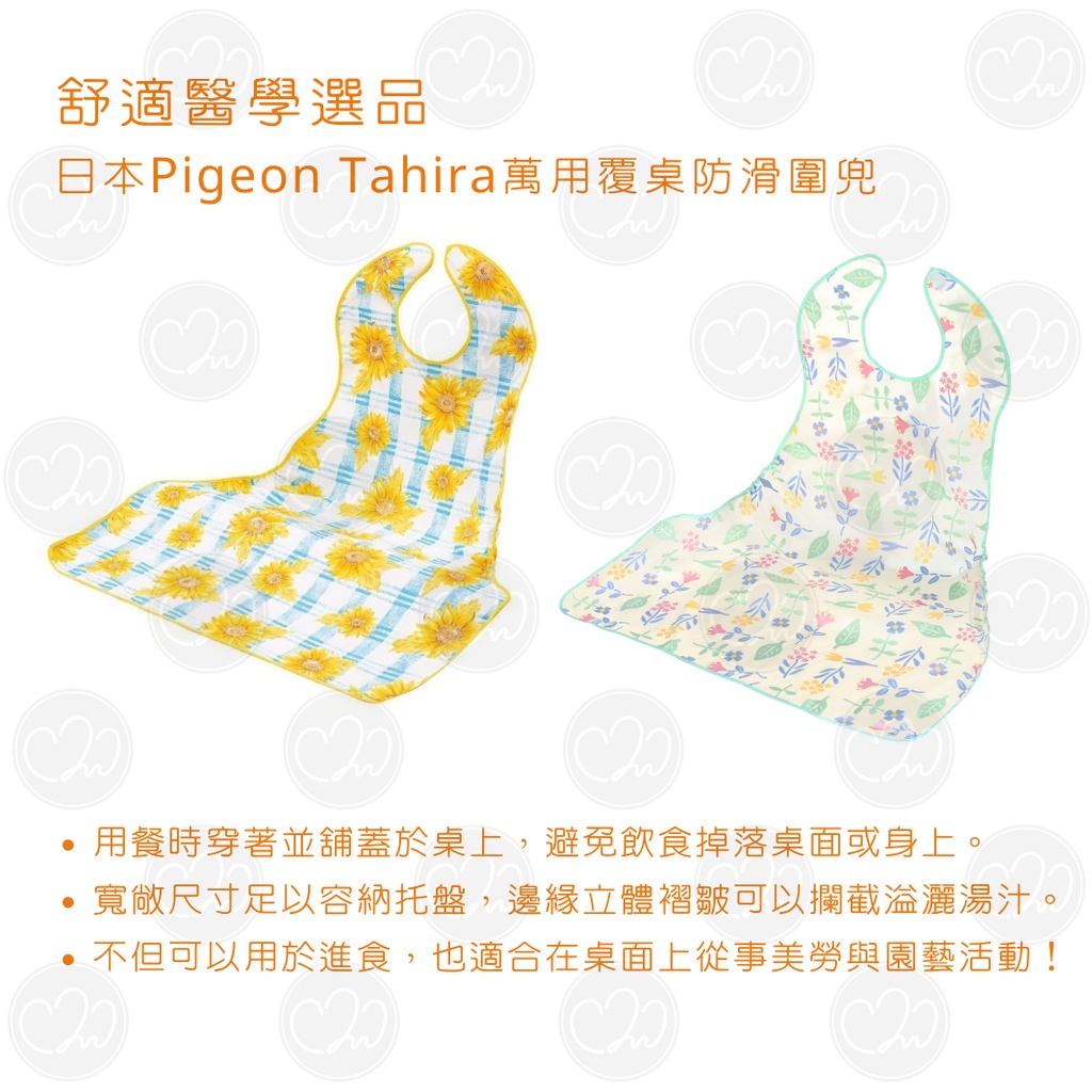 舒適醫學選品|日本Pigeon Tahira 萬用覆桌防滑圍兜|向日葵/花園|長輩用餐防漏罩桌設計