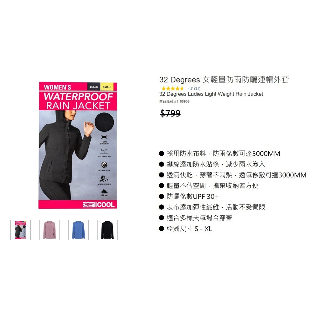📌樂市購📌 32 Degrees 女輕量防雨防曬連帽外套