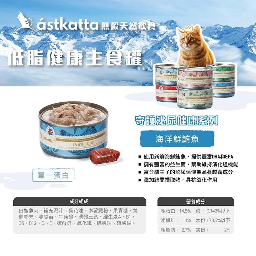 🔆寵愛莎莉🔆astkatta 80克 冰島主食罐 低脂無穀健康鮮燉貓罐頭 貓主食罐 無卡拉膠 全齡貓/幼母貓/熟齡貓