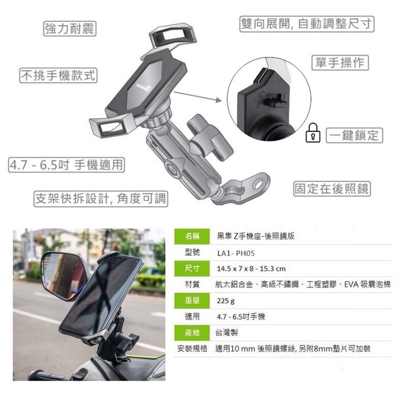 🔥【現貨+發票當日寄出】TAKEWAY LA1-PH05 黑隼 黑準 Z手機座 (後照鏡版) -標準版 超穩 不晃