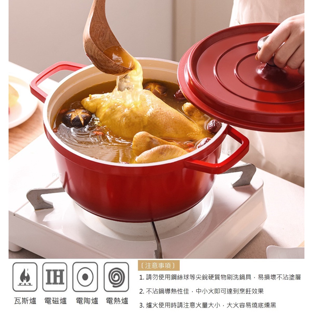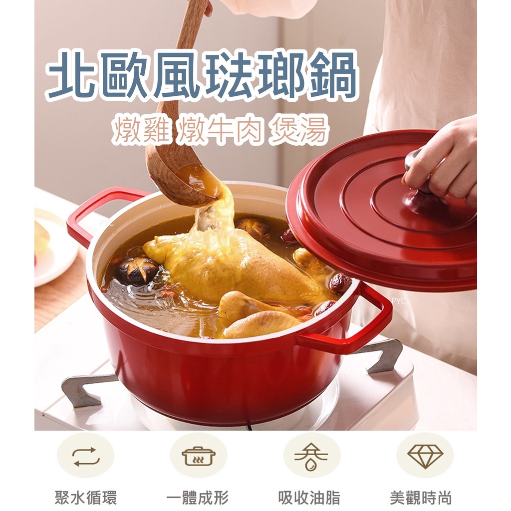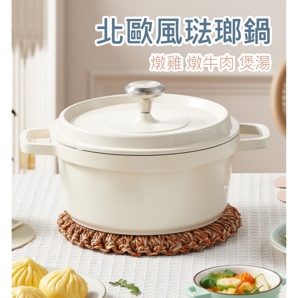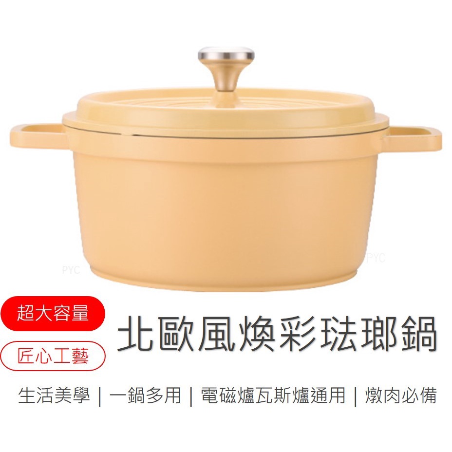 🔥台灣出貨🔥 北歐風煥彩琺瑯鍋 陶瓷加厚鋁合金雙耳燉鍋湯鍋 瓦斯爐電磁爐IH爐通用 交換禮物情人節禮物