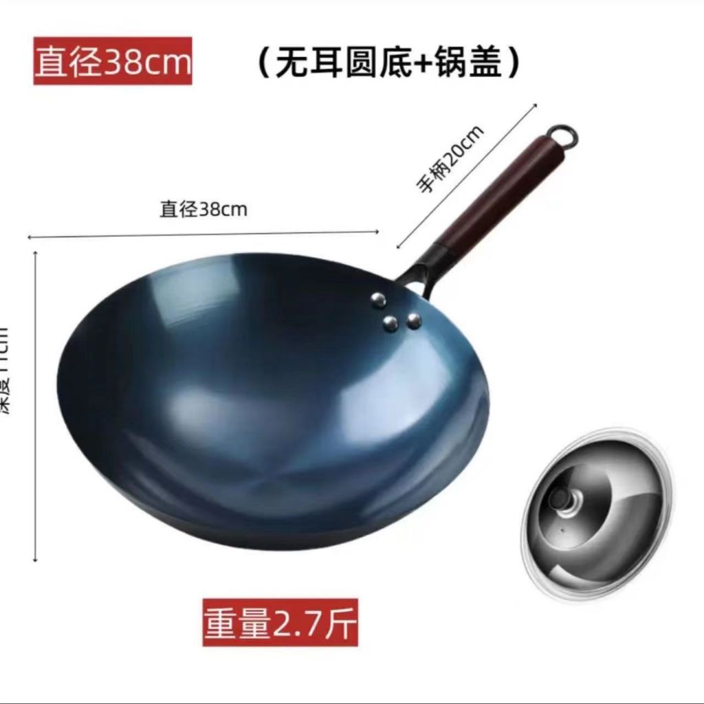 🔥台灣出貨~送鍋蓋🔥章丘鐵鍋 家用手工鍛打無塗層炒鍋 不沾鍋 炒鍋 32cm 老式炒鍋 炒菜鍋 煎鍋 適用燃氣爐