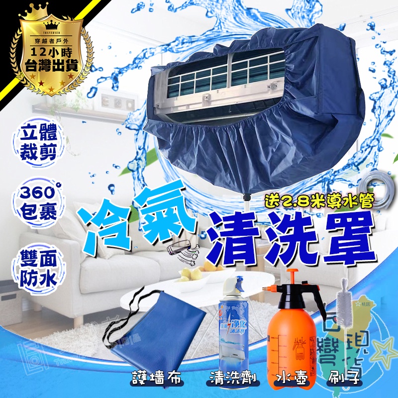 🔥台灣24H現貨🔥冷氣清洗罩🏆空調清洗罩 附2.8米水管 冷氣清洗套 空調清洗套 清洗冷氣 立體式加厚帶綁繩