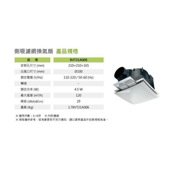 🔥含稅免運促銷🔥SUNON建準 BVT21A006 DC直流變頻換氣扇 濾網型換氣扇 浴室抽風機 三年保固