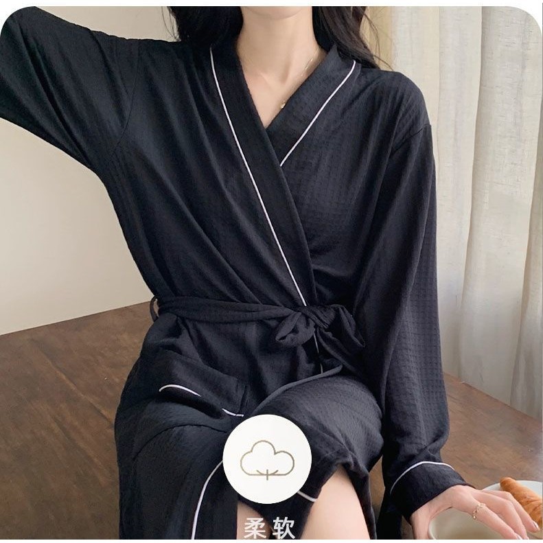 🔥實拍免運🔥浴袍 浴袍女 浴袍睡衣 睡袍睡衣 女生浴裙華夫格棉睡袍女春秋季2023睡裙長款連衣裙酒店長袖浴袍冬天睡衣