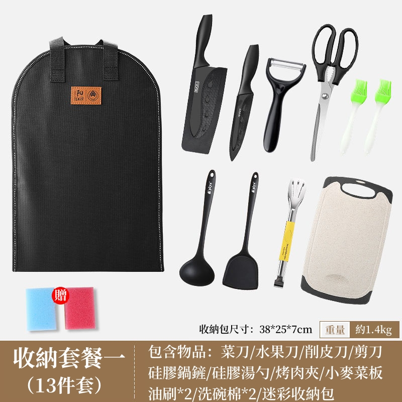 🔥隔日達發貨🔥新款戶外露營廚具套裝多功能野炊外齣便攜刀具野餐必備收納包全套露營 野炊廚具套裝 露營全套廚具13件套