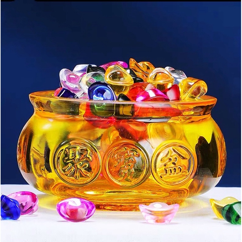 🔥現貨🔥《迷你琉璃聚寶盆+36顆小元寶》辦公室招財小物 擺飾 開業 6公分
