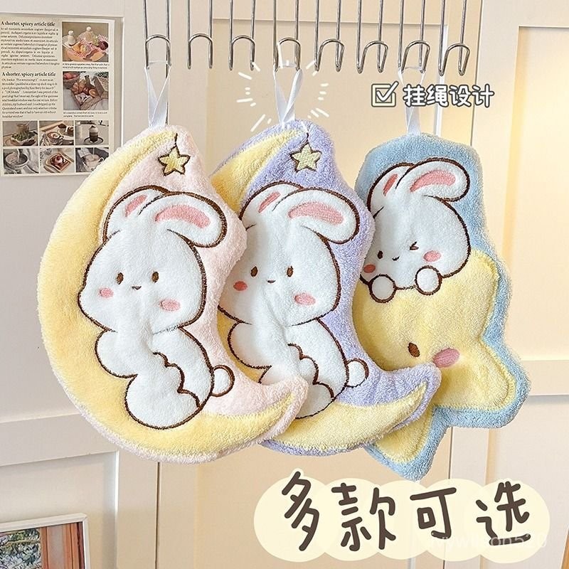 🔥臺灣出貨🔥可愛兔子擦手巾可掛式家用吸水不掉毛廚房衛生間抹布毛巾兒童手帕 QPY1