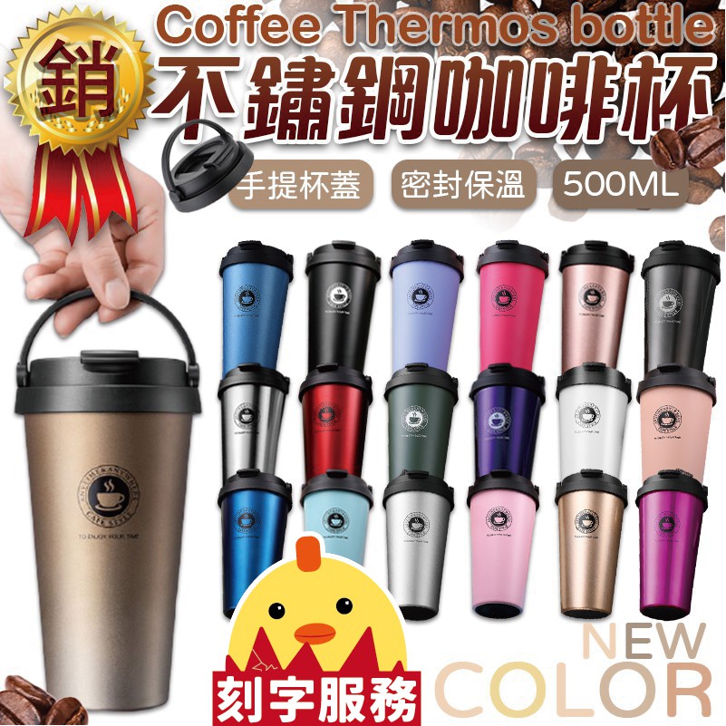 🔥送杯刷🔥無縫內膽高品質手提保溫咖啡杯 便利手提把 500ml 304不鏽鋼不銹鋼保溫杯