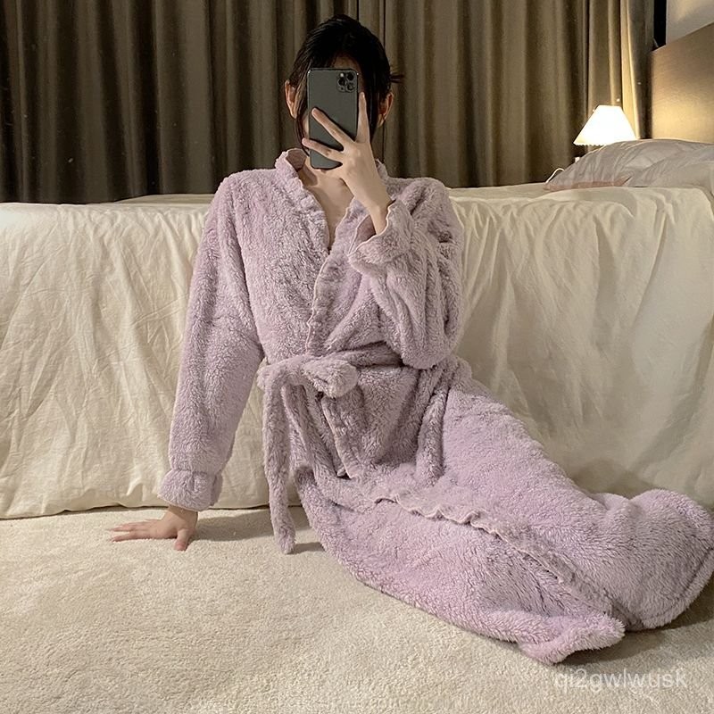 🔥限時下殺價🔥 浴袍 冬季保暖睡袍 吸水浴袍 加厚睡袍 情侶浴袍 高顔值女秋冬一體睡裙韓版宿捨保暖珊瑚絨睡袍可愛ins