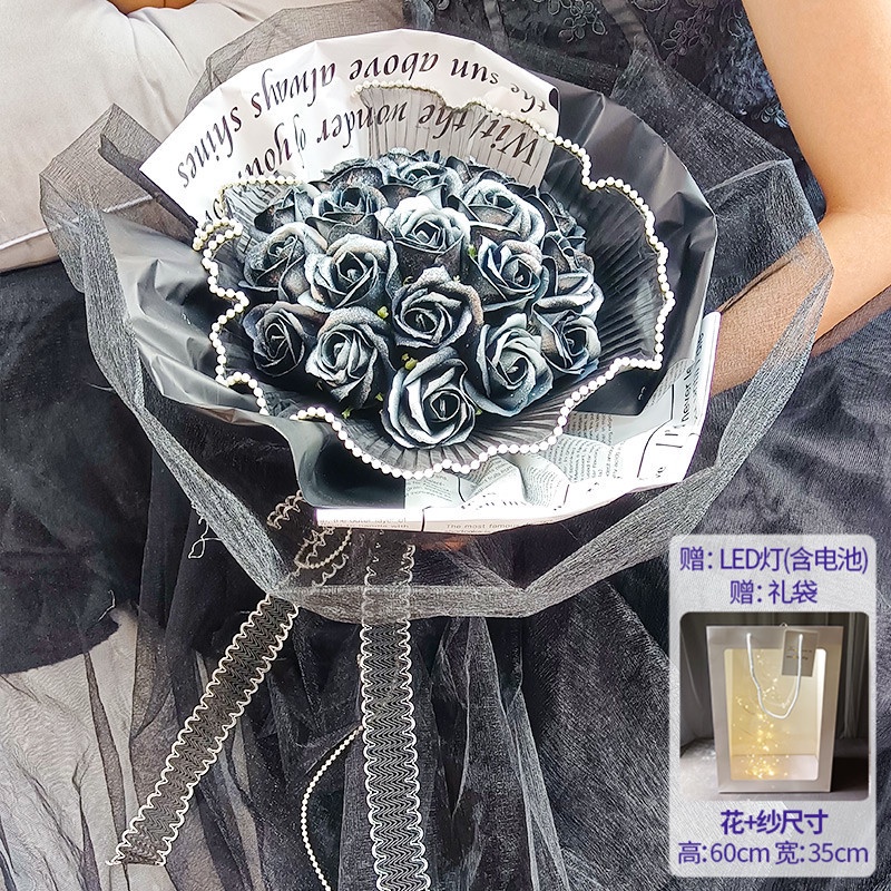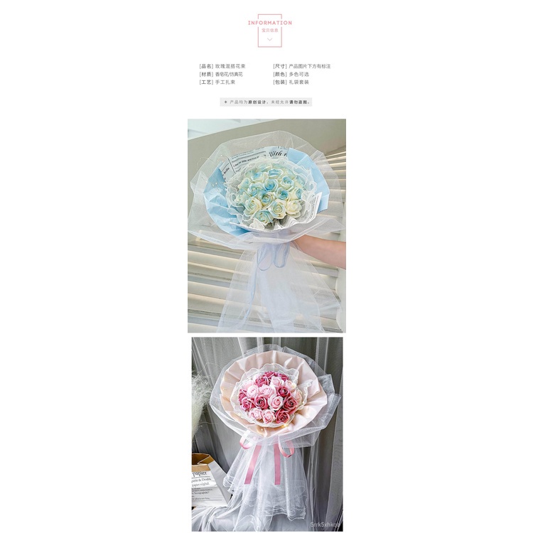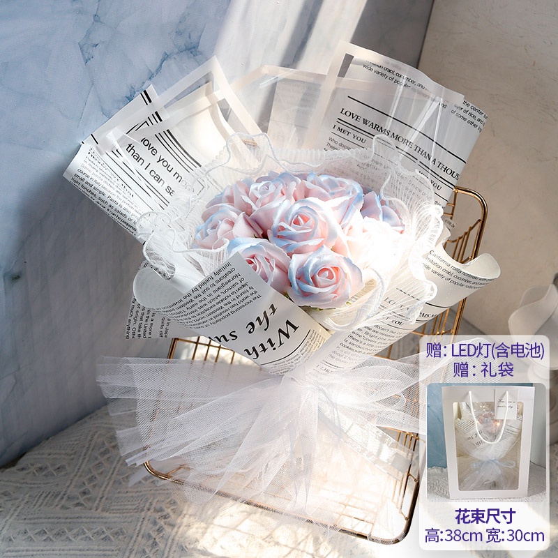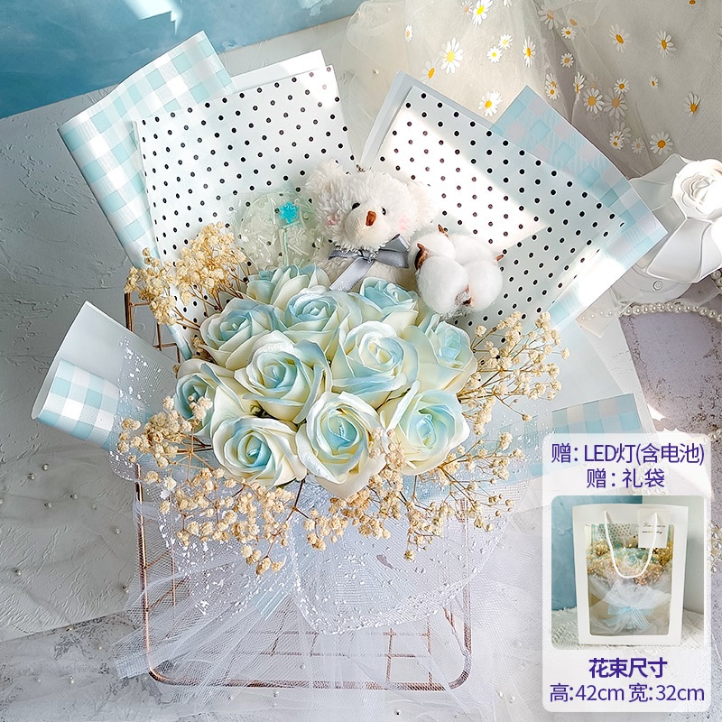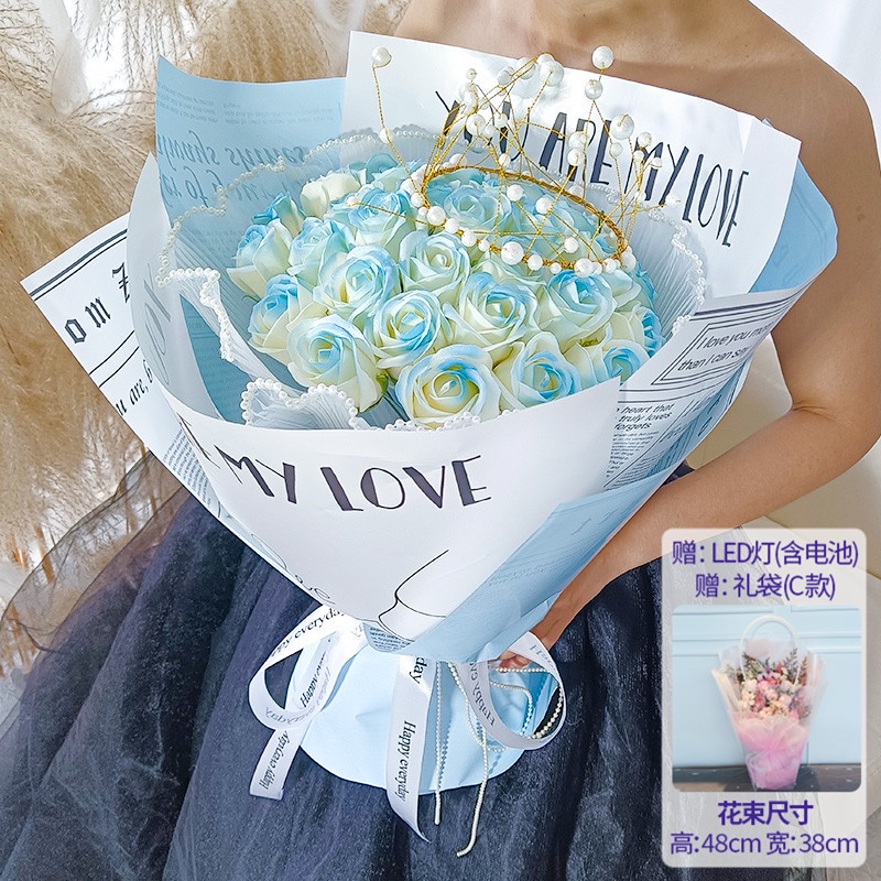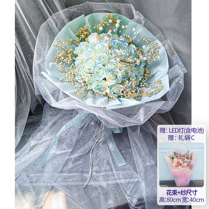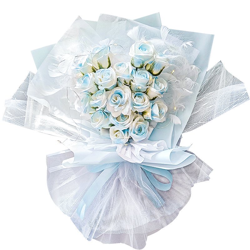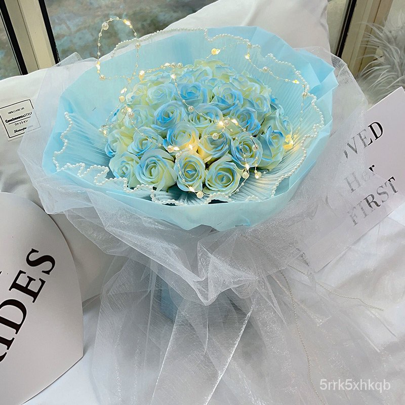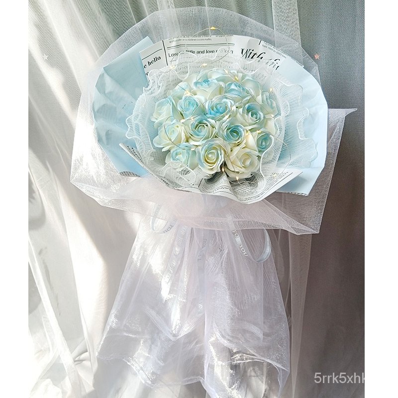 🔥限時免運🔥永生花碎冰藍玫瑰花三八節女神手捧仿真香皂假花生日禮物乾花花束 xhKU