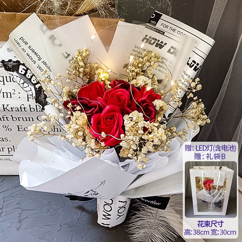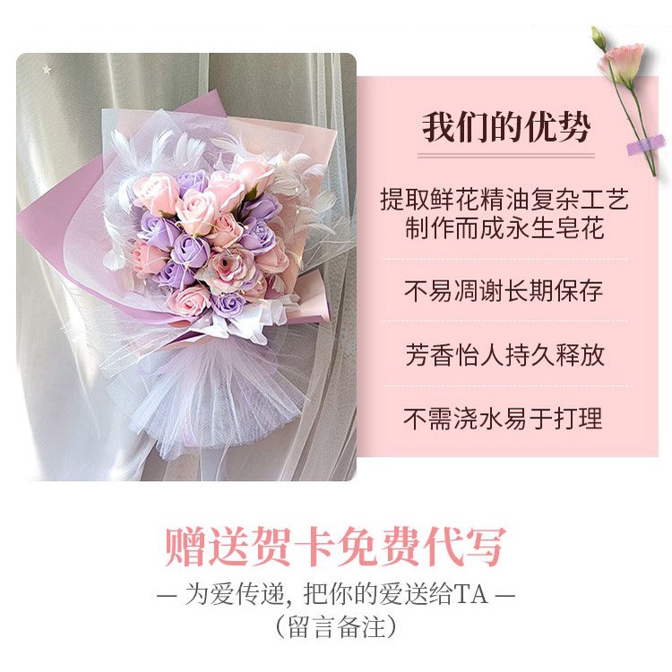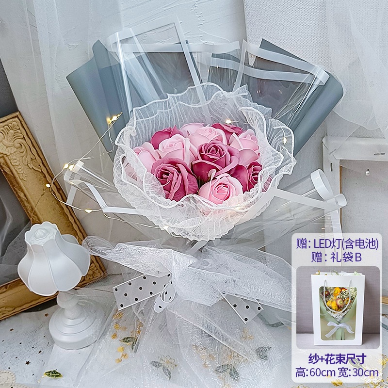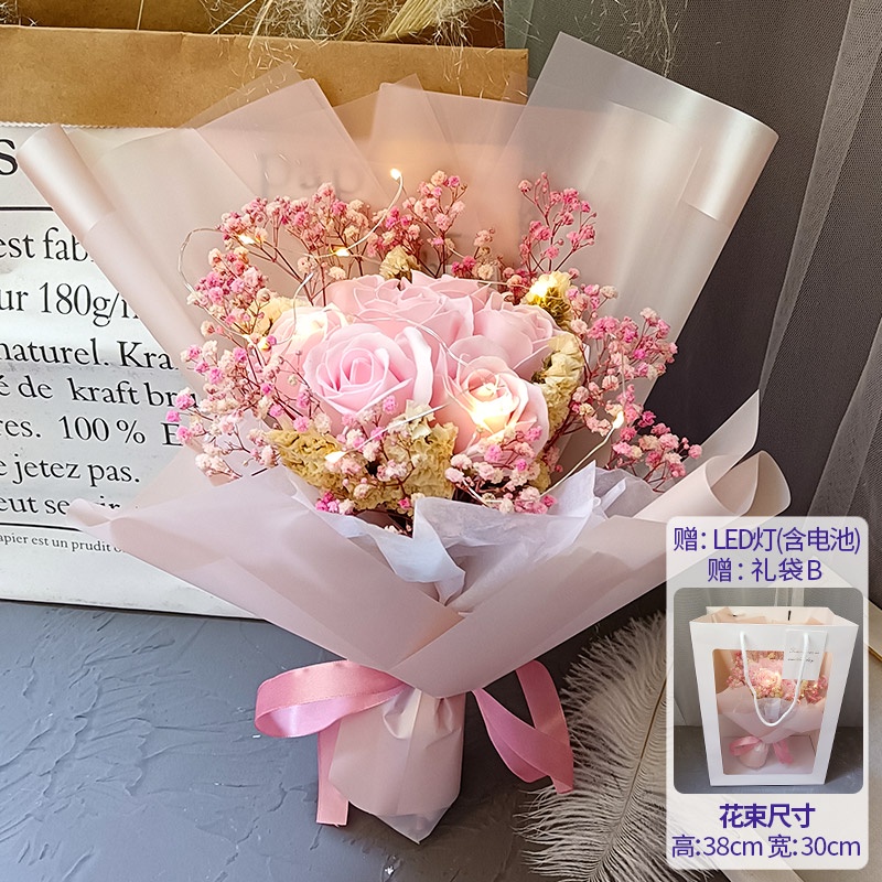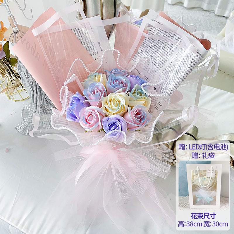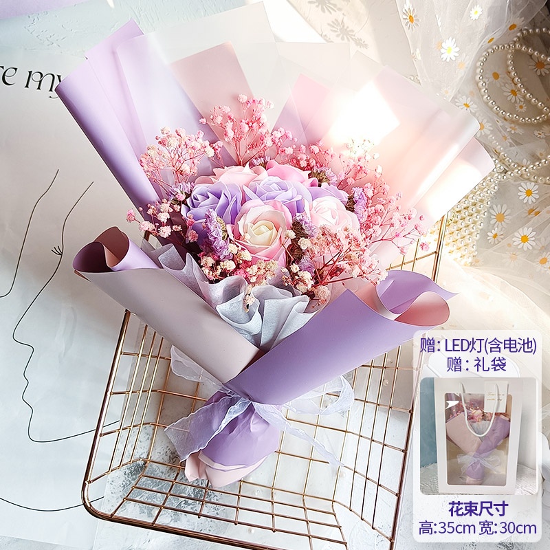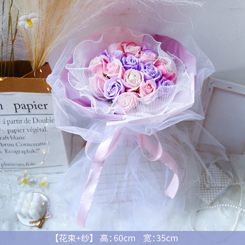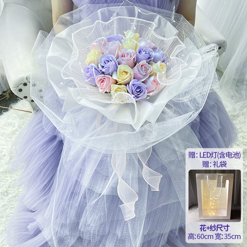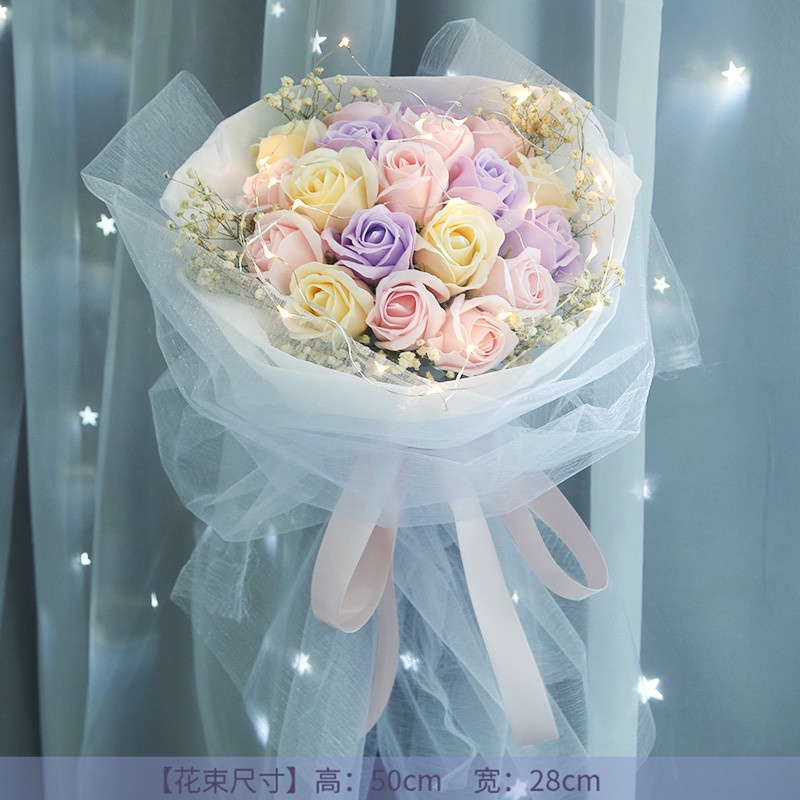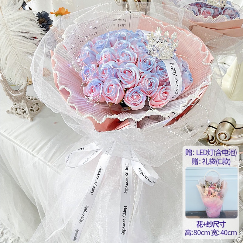 🔥限時免運🔥永生花碎冰藍玫瑰花三八節女神手捧仿真香皂假花生日禮物乾花花束 xhKU