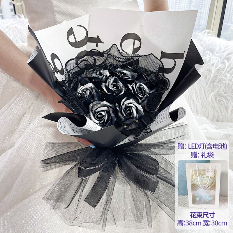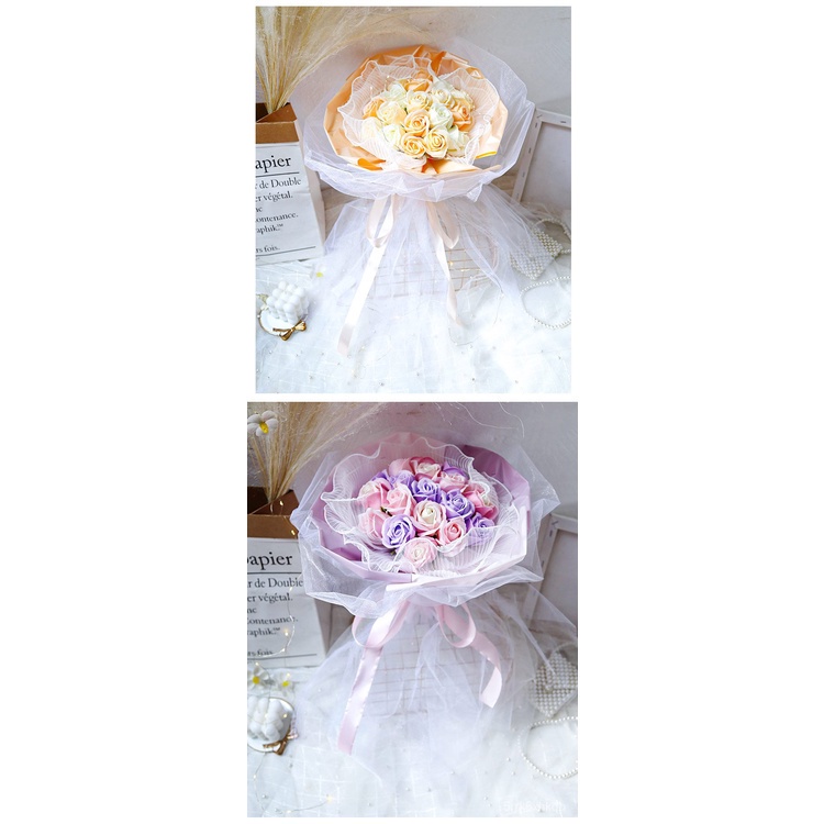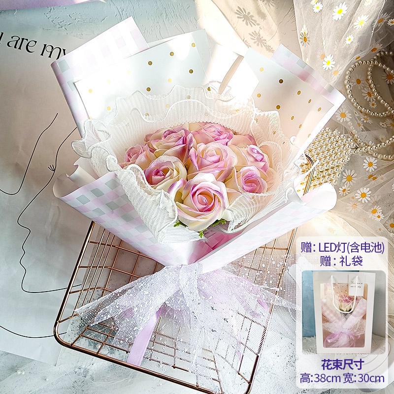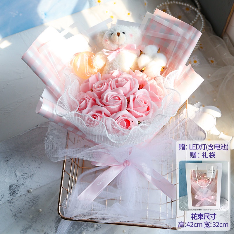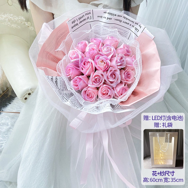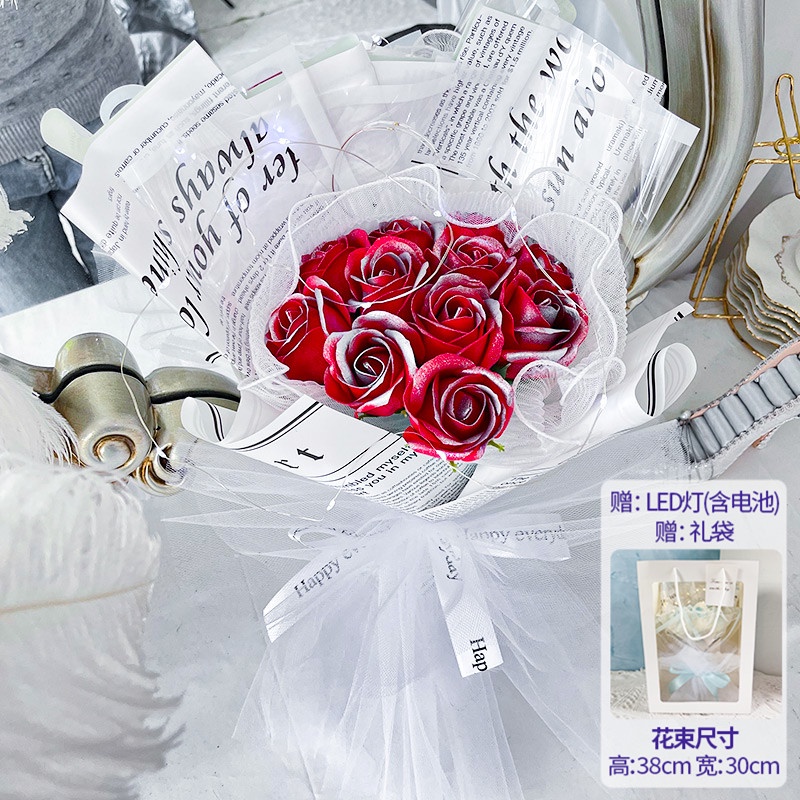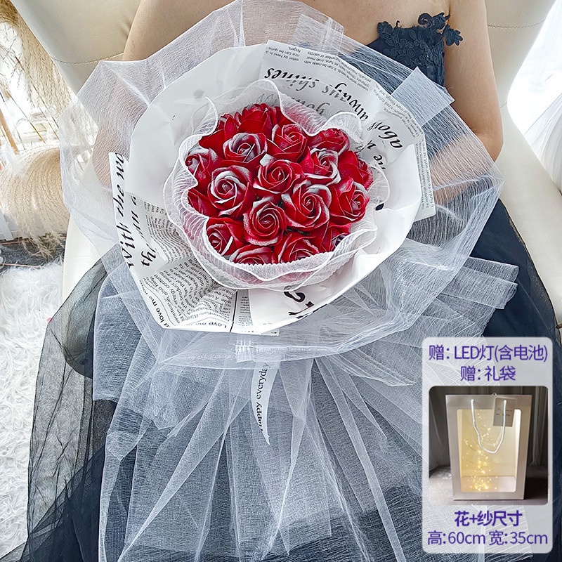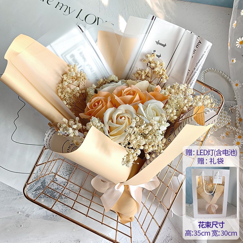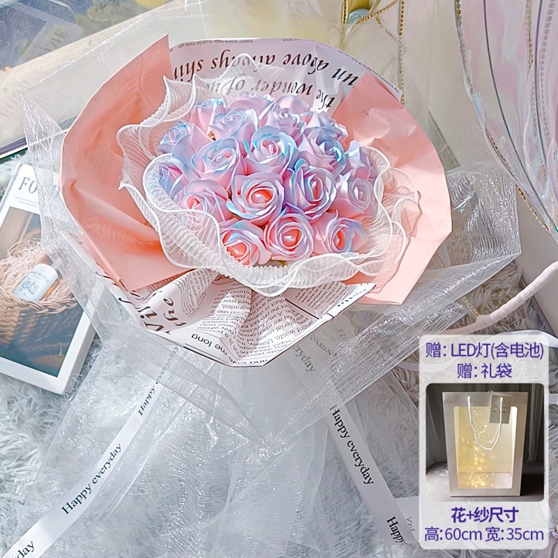 🔥限時免運🔥永生花碎冰藍玫瑰花三八節女神手捧仿真香皂假花生日禮物乾花花束 xhKU