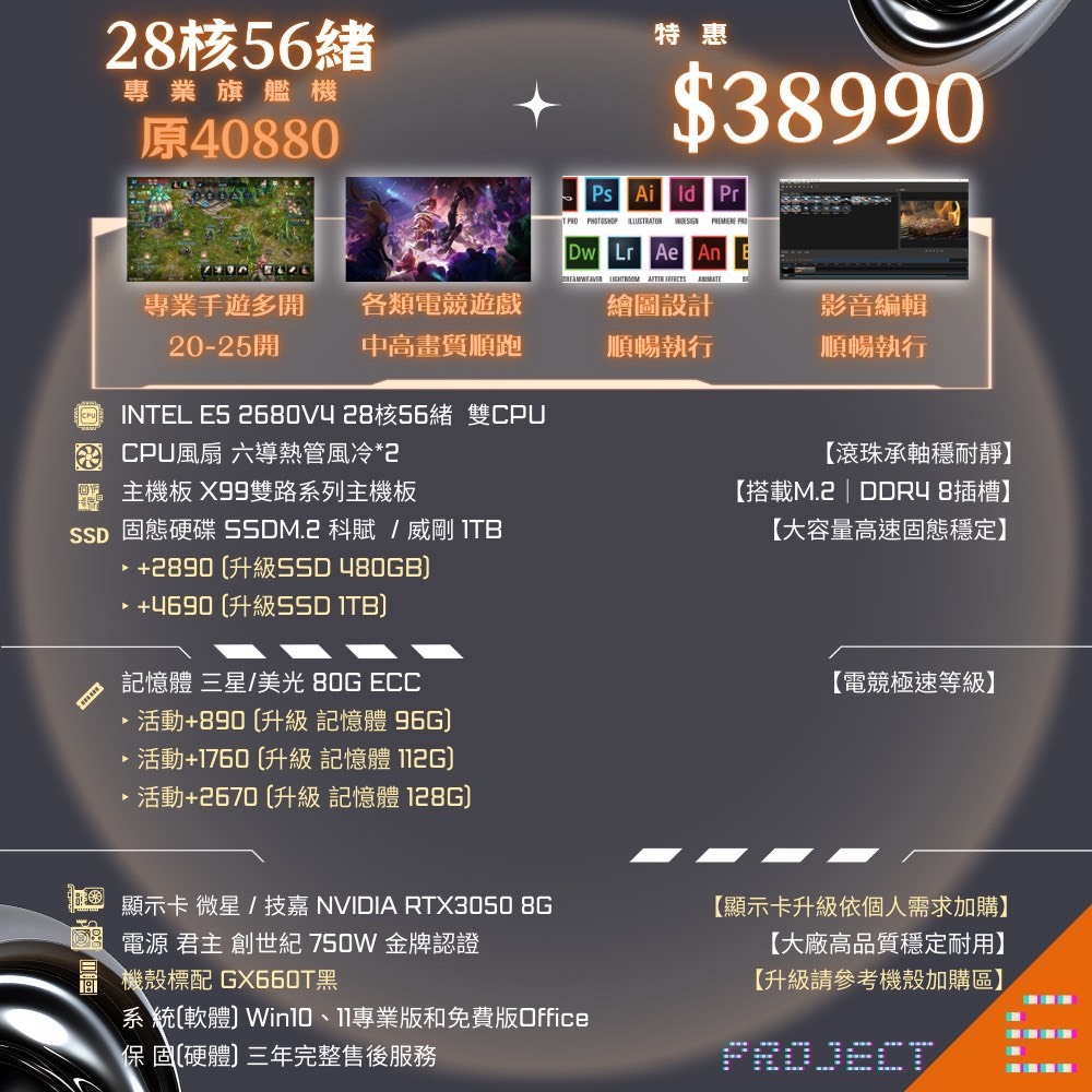 🔥Intel 72核心電腦主機🔥客製電競主機 桌上型電腦 商用工作站 模擬器多開 繪圖渲染 天堂 LOL 分期0利率