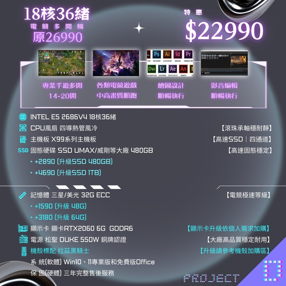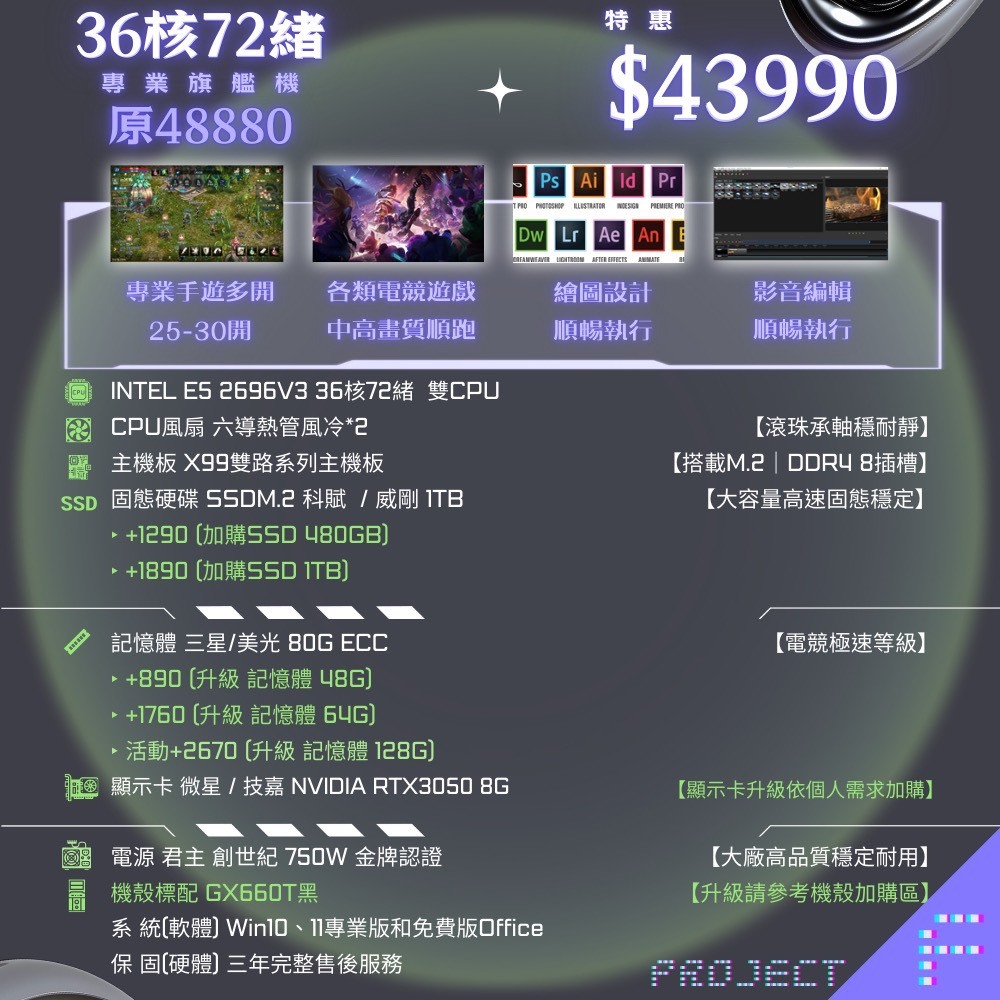 🔥Intel 72核心電腦主機🔥客製電競主機 桌上型電腦 商用工作站 模擬器多開 繪圖渲染 天堂 LOL 分期0利率