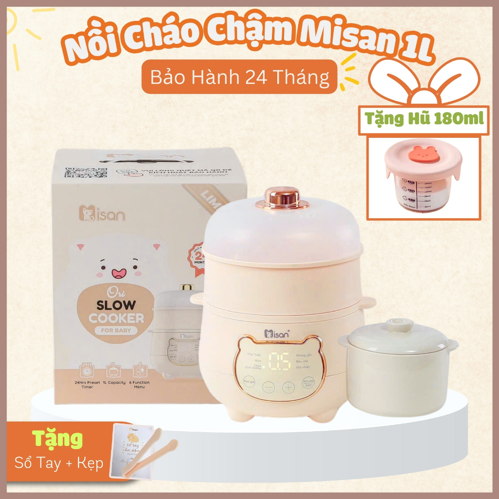 (免費玻璃罐)Misan 1.0L 嬰兒慢煮粥鍋,具有 6 種多功能烹飪功能,嬰兒斷奶慢燉鍋