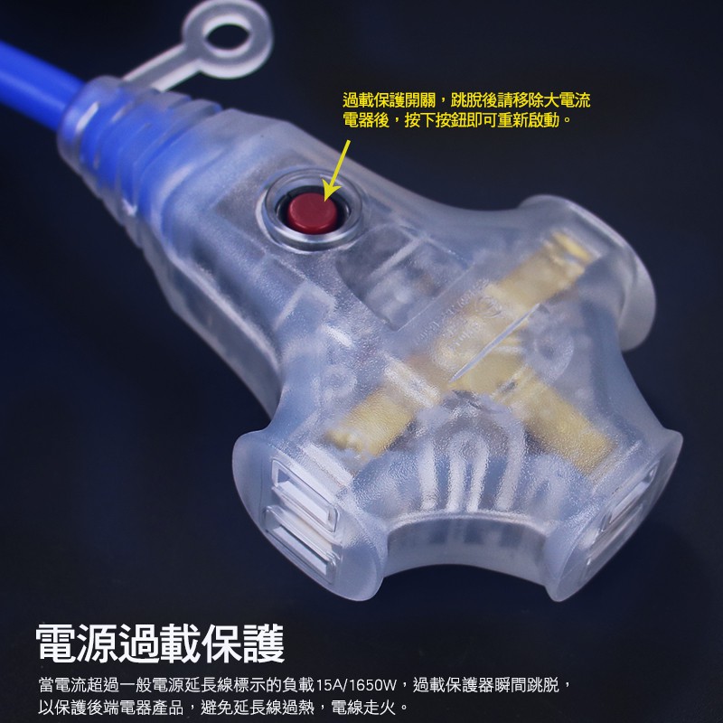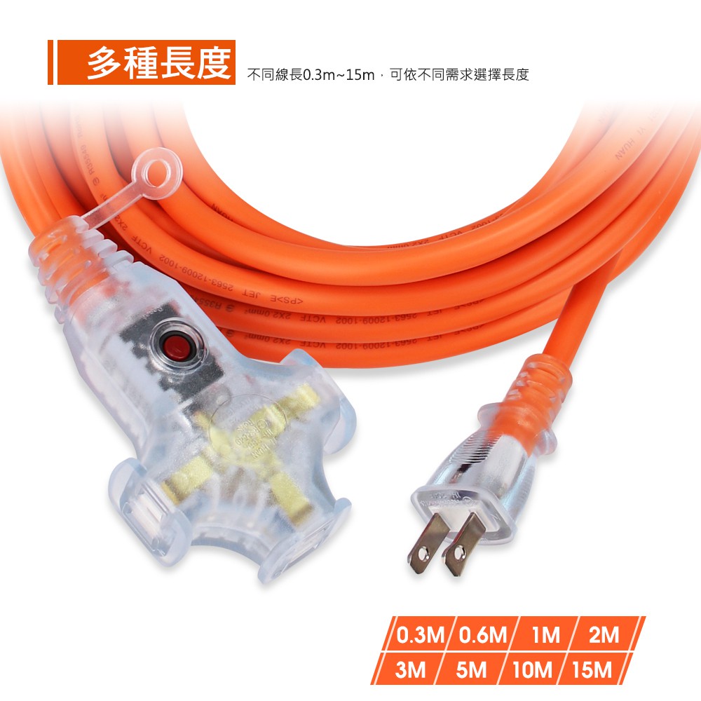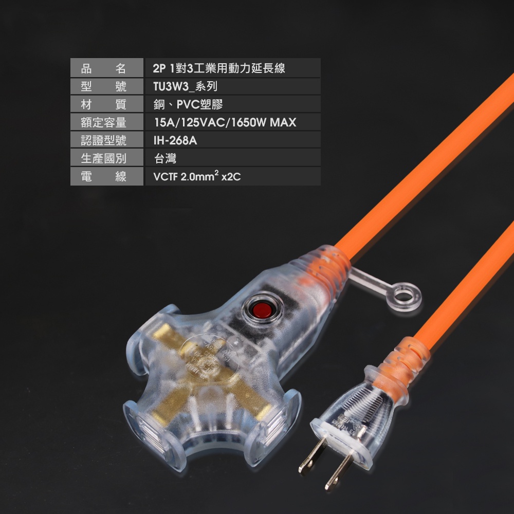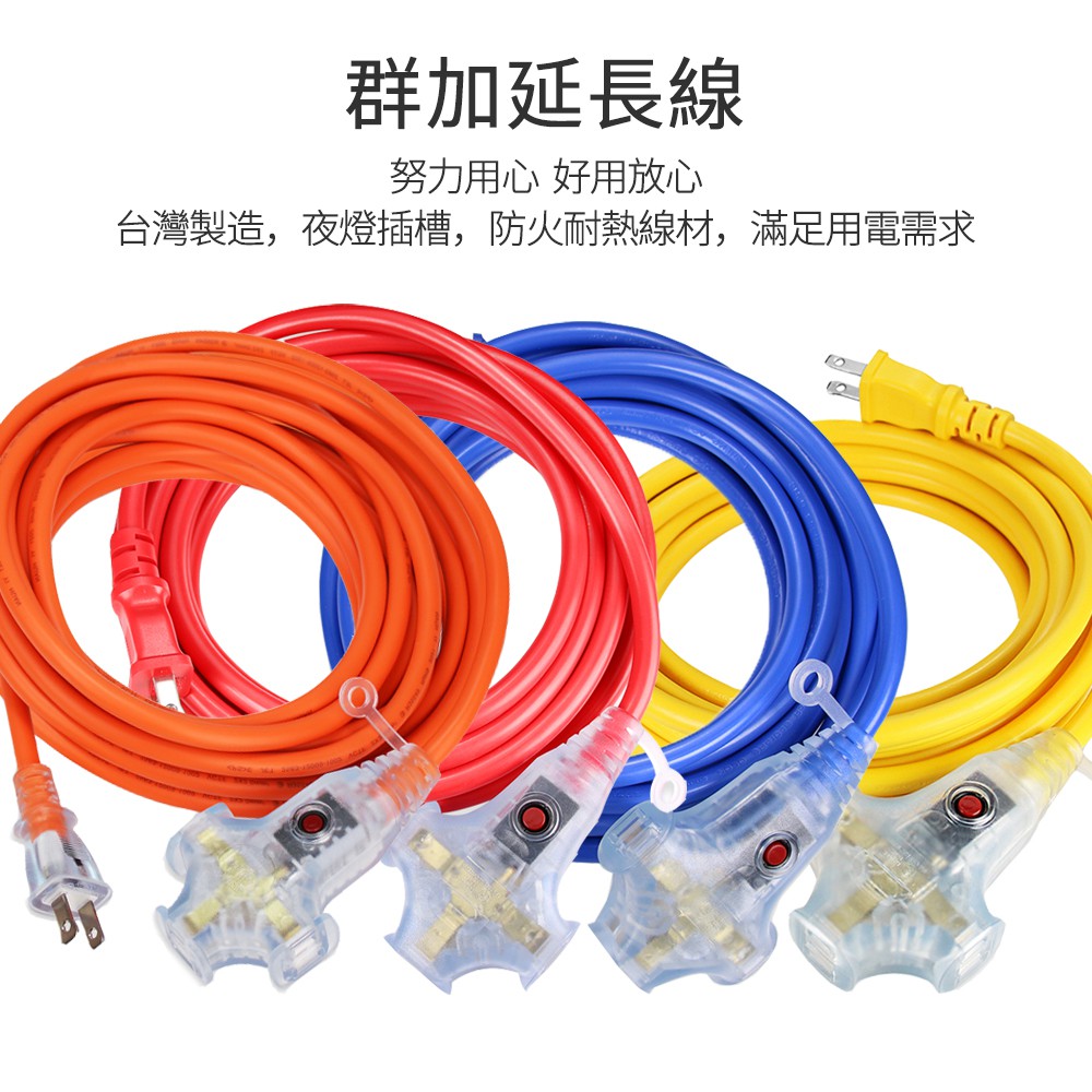 (台灣製造)群加2P一對三1擴3插座加固帶燈延長線動力線露營插座工業工地兩插電源延長線