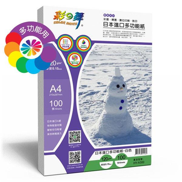 (含稅) 彩之舞 HY-A300 A4 120磅 120G 雙面列印 日本進口多功能紙 100張 厚磅 噴墨 雷射 影印