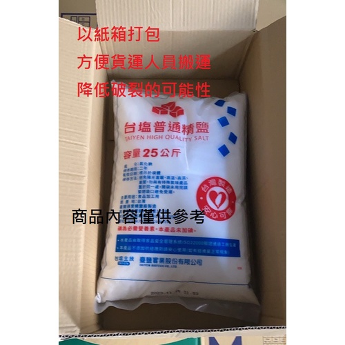 (含運含稅)台鹽普通精鹽25kg 細鹽25公斤 食品加工用 中彰投雲可到付