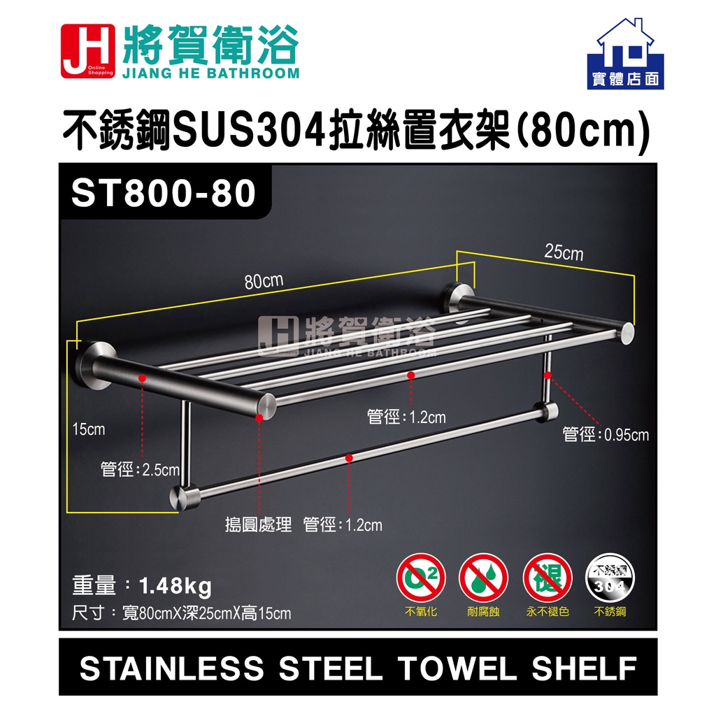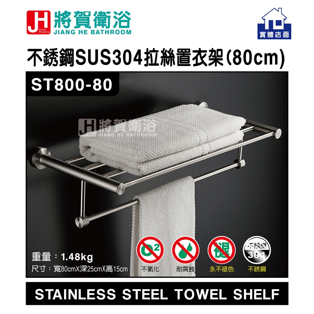 (將賀衛浴=實體店面) ST800-80 圓形不銹鋼SUS304拉絲浴巾置物架(80公分)-臺灣現貨