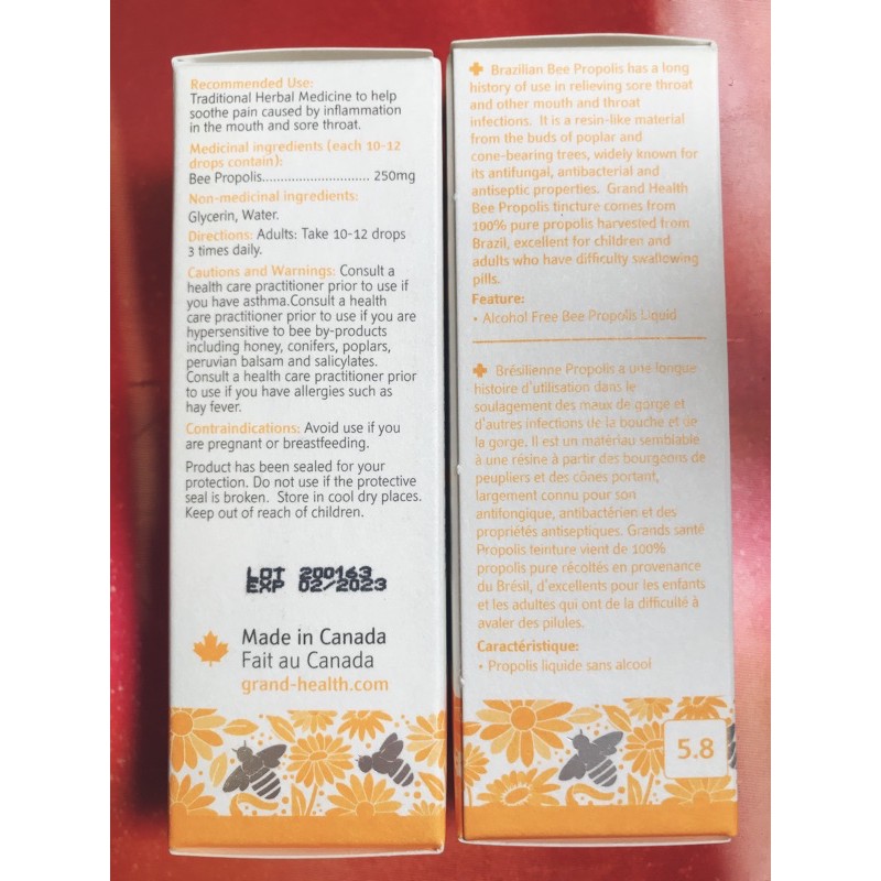 (專)加拿大🇨🇦代購🎈 【Grand Health】巴西純天然蜂膠滴劑(無酒精) Bee Propolis 敏寶蜂膠(