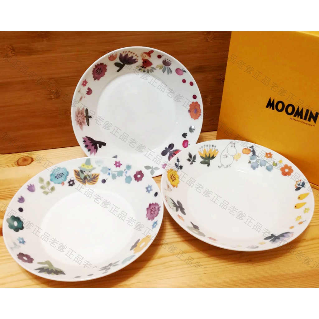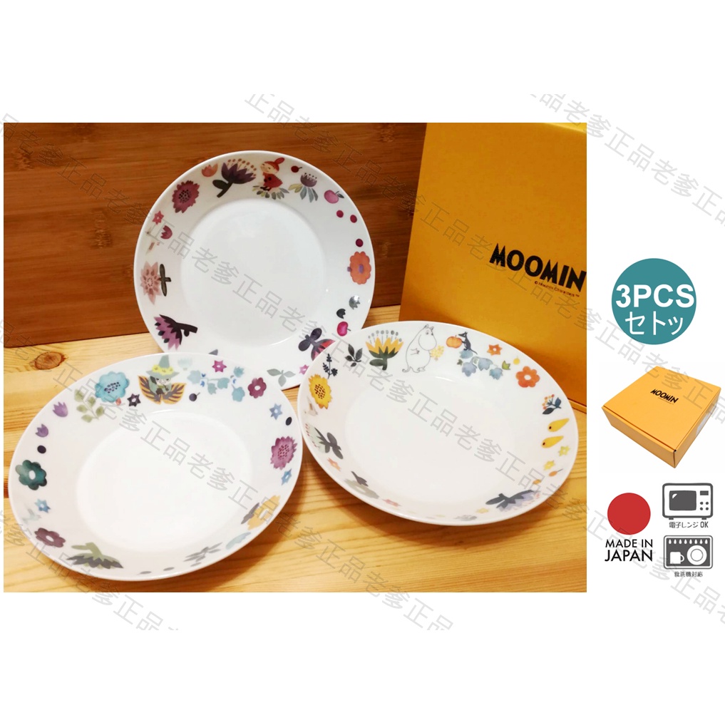 (日本製)日本進口 Moomin 水彩畫風 輕量化 3入 盤子組 盤子 陶瓷盤 盤 瓷盤 陶瓷 慕敏 嚕嚕米 姆明